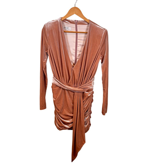 House Of CB London Farrah Mini Dress Pink Velour Velvet V Cut Long Sleeve Medium