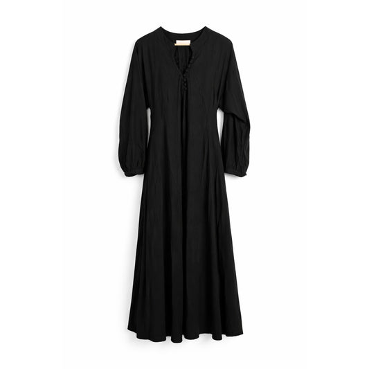 Natalia Martin Fiore Black Flat Cotton Maxi Dress Caftan XS