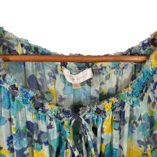 Love Shack Fancy Rayna Floral Long Sleeve Ruffle Dress Size Small