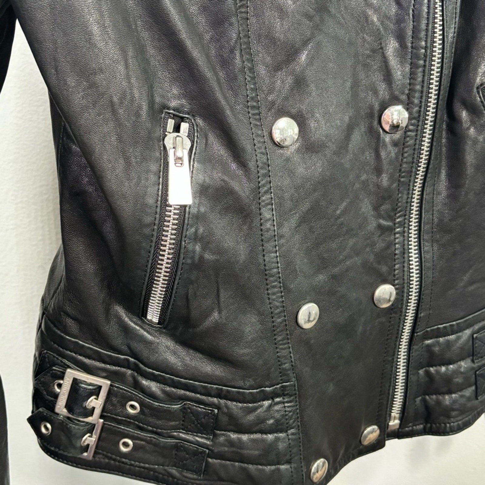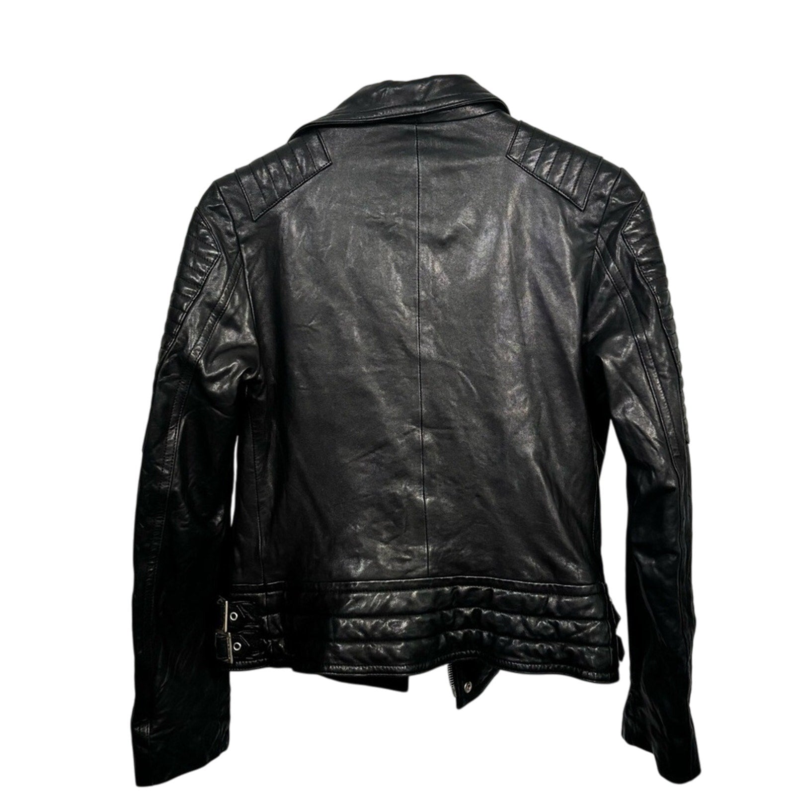 Anine Bing Grainy Leather Belted Biker Moto Jacket Small S