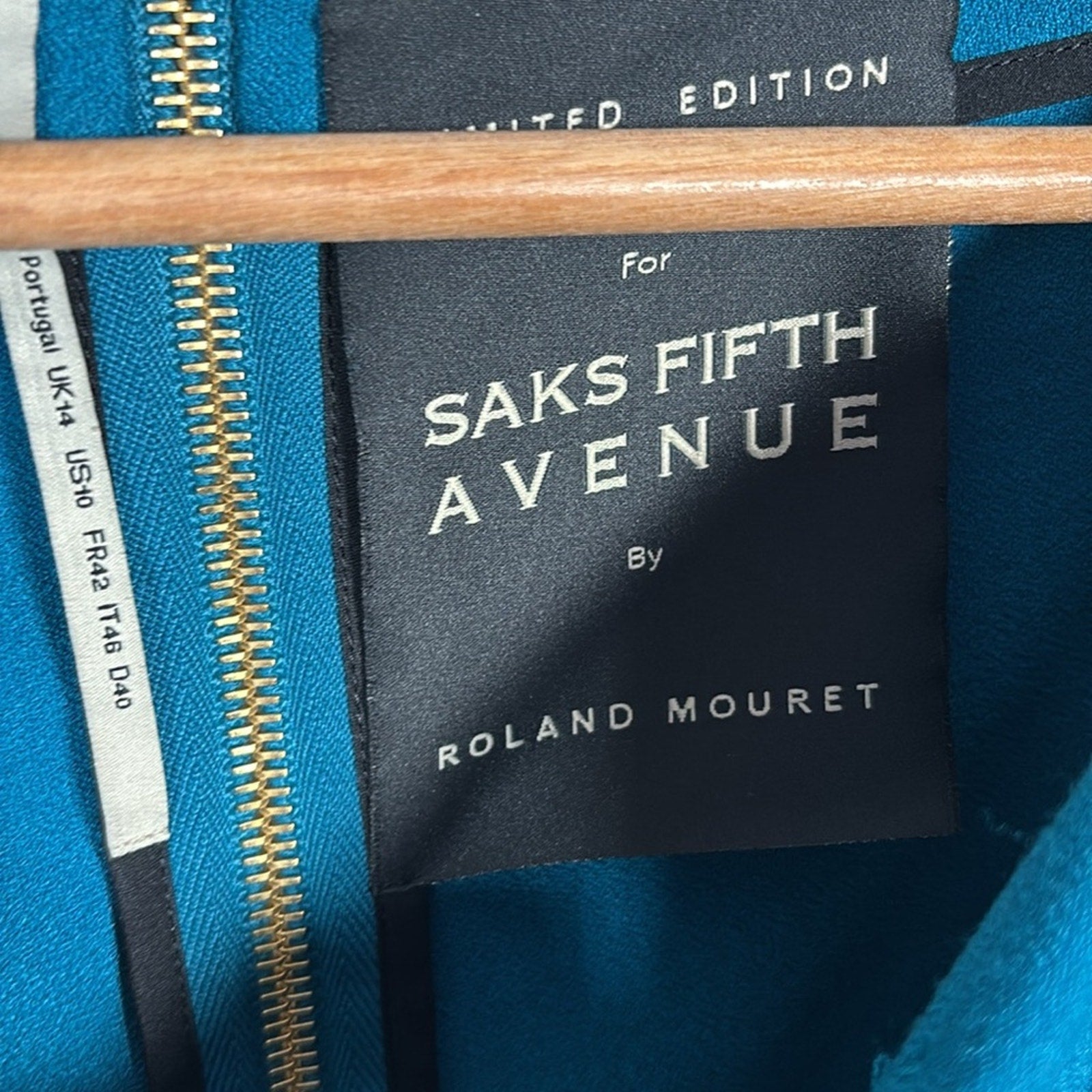 This sophisticated sheath dress by Roland Mouret features a striking asymmetrical neckline and 3/4 sleeves, perfect for a work or cocktail setting. The blue hue and sleek silhouette offer a polished and professional look, ideal for making a statement at any formal occasion.