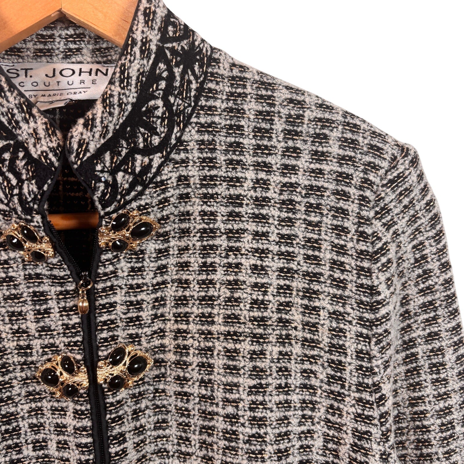 St. John Couture Women’s Black & Gold Jeweled Tweed Jacket & Skirt Suit Set – Size 6