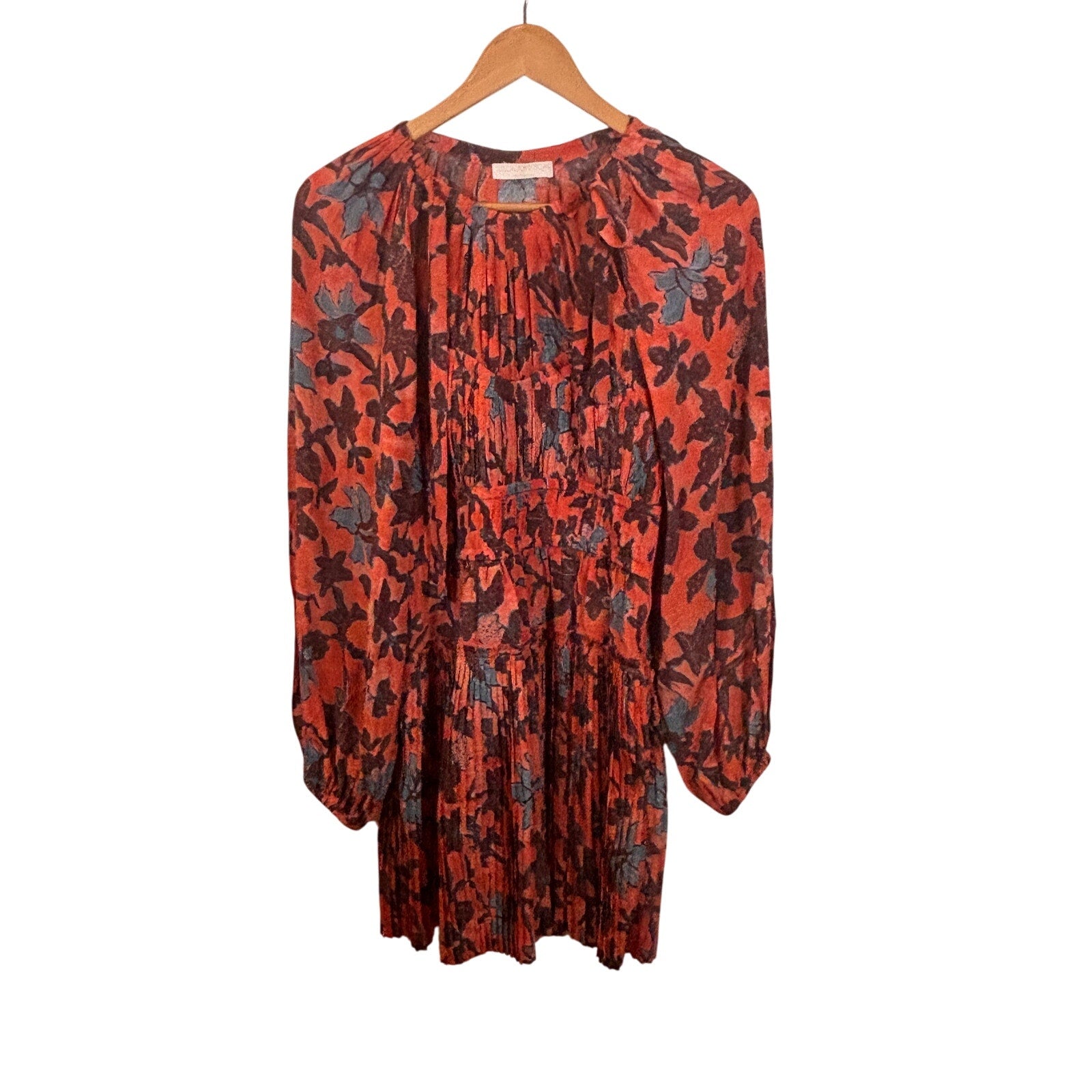 Ulla Johnson Pre Fall 2022 Sefia Silk Red Blend Long Sleeve Mini Dress Size 4